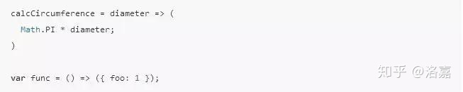 {}为了省略return关键字)为返回多行语句(例如对象字面表达式),则需要使用()包围函数体。