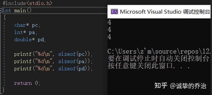 也就是说无论是char类型还是int类型指针大小都是4或8(在64位系统上)个字节。