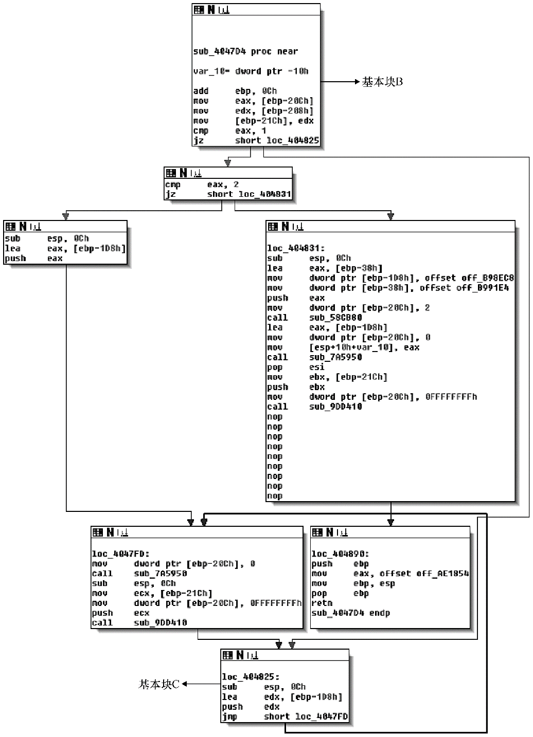 图6-5 使用IDA Pro反汇编函数的CFG示例
