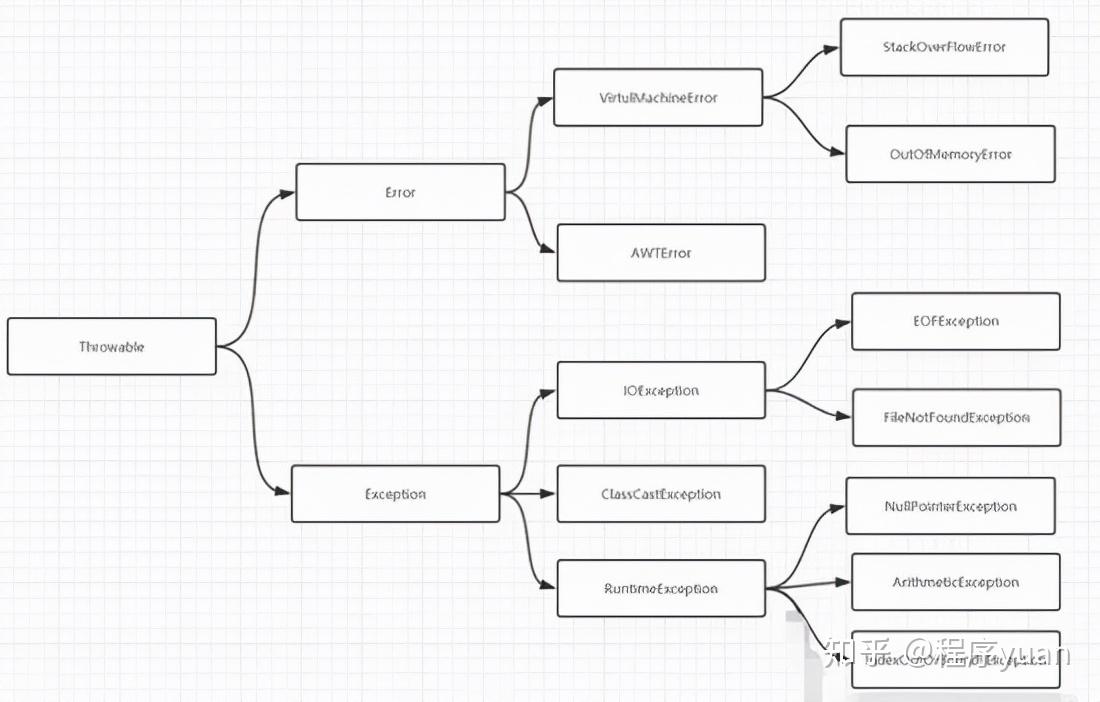Throwable 包含两个子类:Error(错误)和 Exception(异常),它们通常用于指示发生了异常情况。