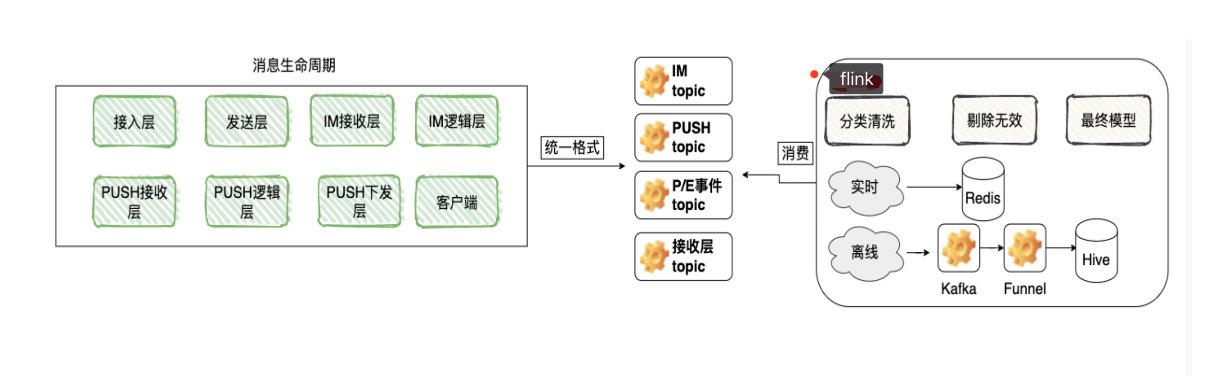 收集日志清洗日志输出到数据源有logAgent帮我们收集日志到Kafka,实时清洗日志我们用的是Flink,清洗完我们输出到Redis(实时)/Hive(离线)。