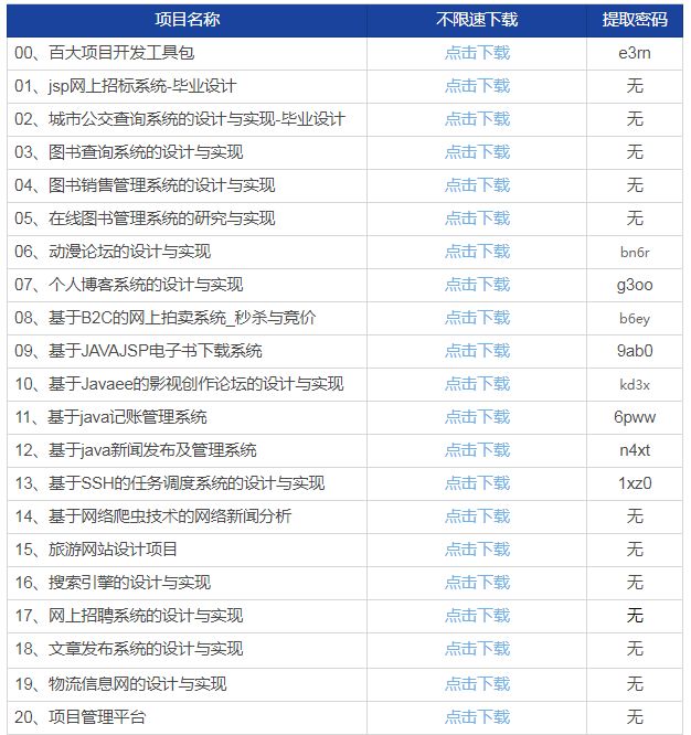 上述展示的java百大项目因内容较多,在此只展示部分,想看其他项目的可以说一声,我把资料都打包好了,点个小赞,项目到手,还在等什么?
