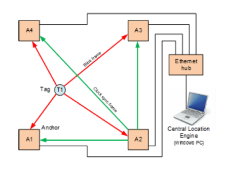 RTLS(real time location system)其实算是整个系统的名称,但也用它来定义了主要功能,即定位信标的位置。整个系统工作时,主基站会不断向周围发送CCP信号,而信标Tag会不断的向周围发出BLINK信号,基站一旦收到就立刻回传给上位机,在上位机端统一分析解算。