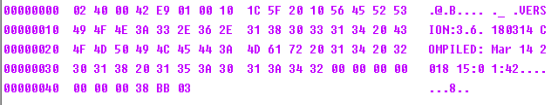 buf[4]-buf[67]:本次的信息内容。首先第一字节,即buf[4]=42,这是本次所发内容的标志信息,42对应的是下位机当前的配置信息的标志位。之后便是具体的内容,buf[5]-buf[12]是下位机的ID号,每台机都是独有的,同样前面表示低位,后面表示高位,由表可以看出下位机的ID为:10205f1c100001f4。之后buf[13]-buf[67]里面的内容都是ascii码,根据ascii码表可以查出对应内容为:VERION:3.6. 150921 COMPILED: Sep 21 2015 16:0 2:50…。即对应的版本,日期,时间等内容。