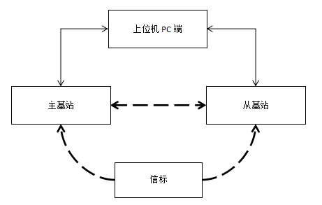 由于系统使用TDOA定位算法(后文会介绍),所以基站之间必须要保持时间同步。实现方式就是通过设置主从基站,主基站不断的发送CCP(clock calibration packets),从基站接收到CCP,他们都把CCP信息回传到上位机解算得到他们的同步时间。
