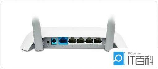 (2)无线路由器也有两种端口:颜色最明显的是WAN口,链接网线;其他是LAN口,以4个最为常见,可以连接上网终端设备,有明显的天线作为识别标志;如下图: