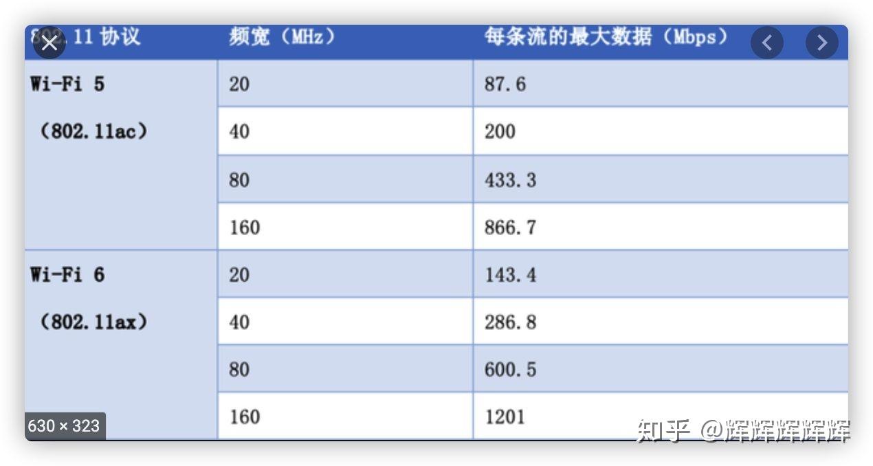 比如2x2 MU-MIMO的WIFI5路由2.4GHz支持40MHz频宽,5GHz支持80MHz频宽就可以计算出 200 X 2(2.4GHz) + 433 X 2(5GHz) = 1200M。这个计算方法也可以得到WIFI5手机5GHz的最大握手速率433.3 X 2 = 867M,如果你用WIFI5手机连接1000M的宽带最多也只能跑到800M。所以1000M的宽带需要WIFI6路由 + WIFI6手机才能跑满。