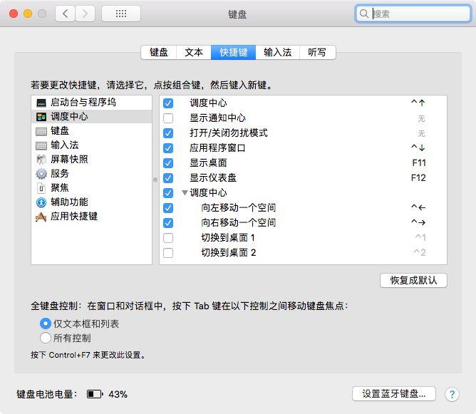 快捷键也可以在系统偏好设置->键盘->快捷键去自定义设置。(想知道更全的快捷键组合下载CheatSheet.)