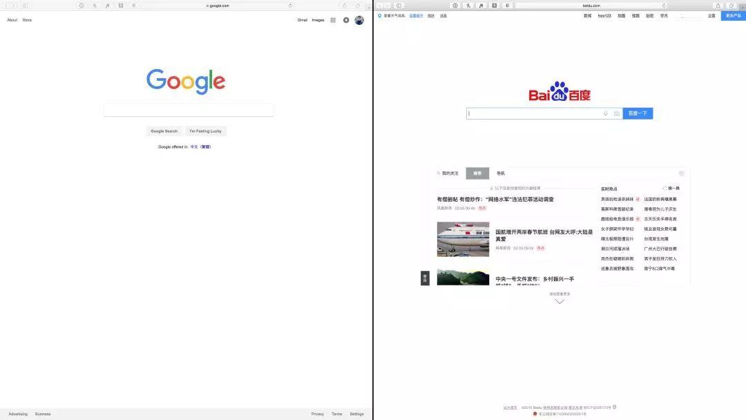 8. 长按窗口左上角红绿灯的绿灯。窗口会左右分屏为二,如下图: