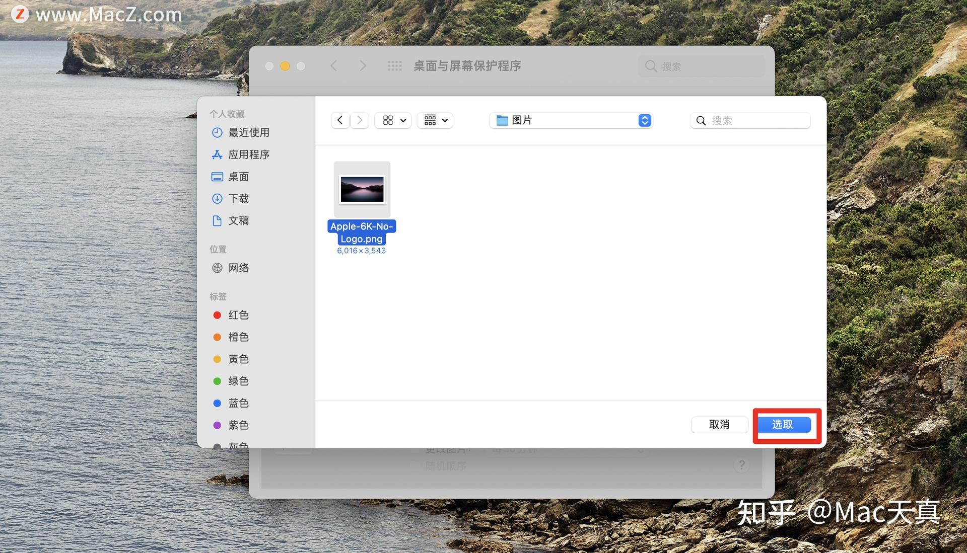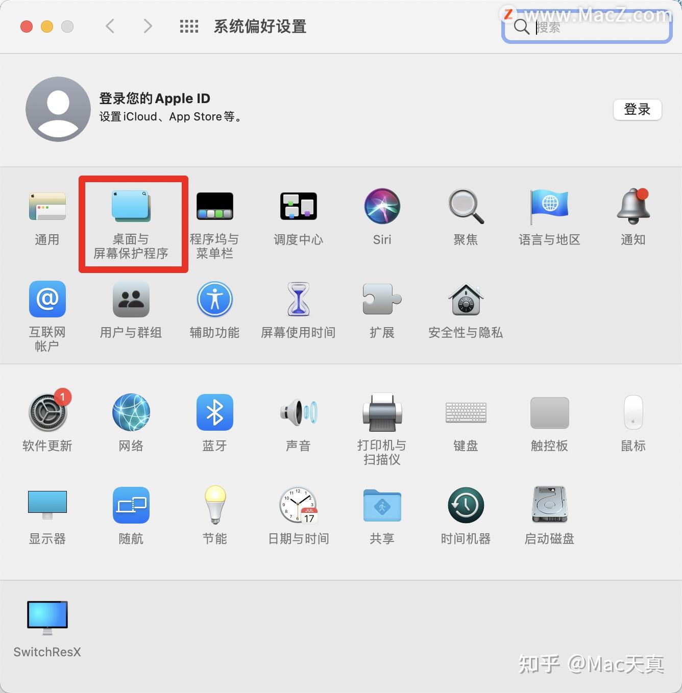 打开‘系统偏好设置’——“桌面与屏幕保护程序”