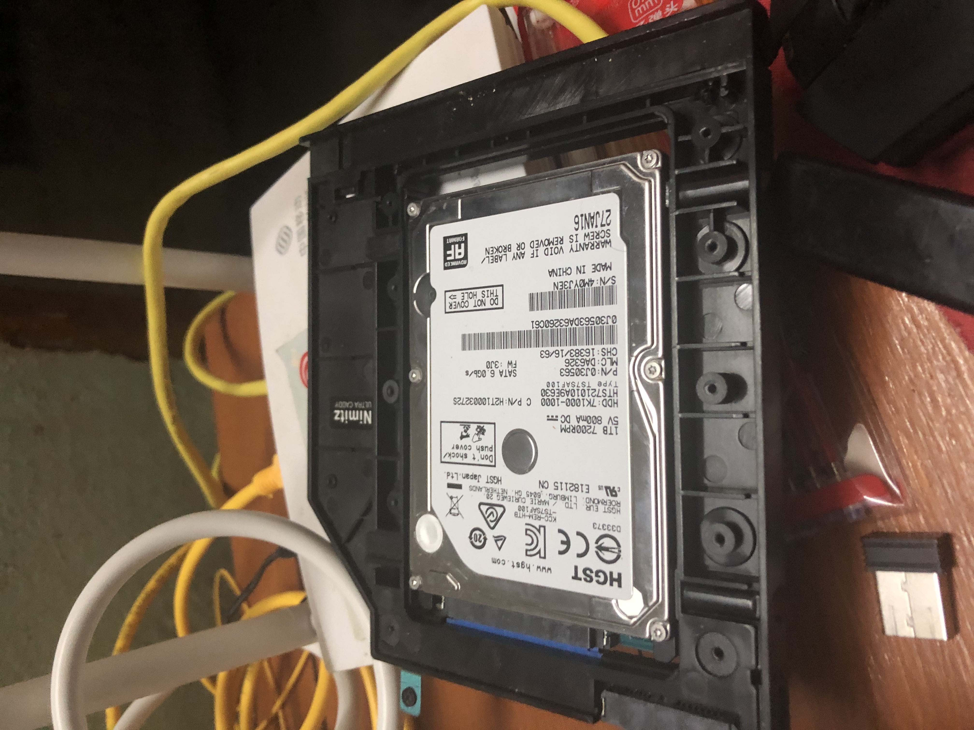抽出光驱位的硬盘支架将机械硬盘放置一边。。