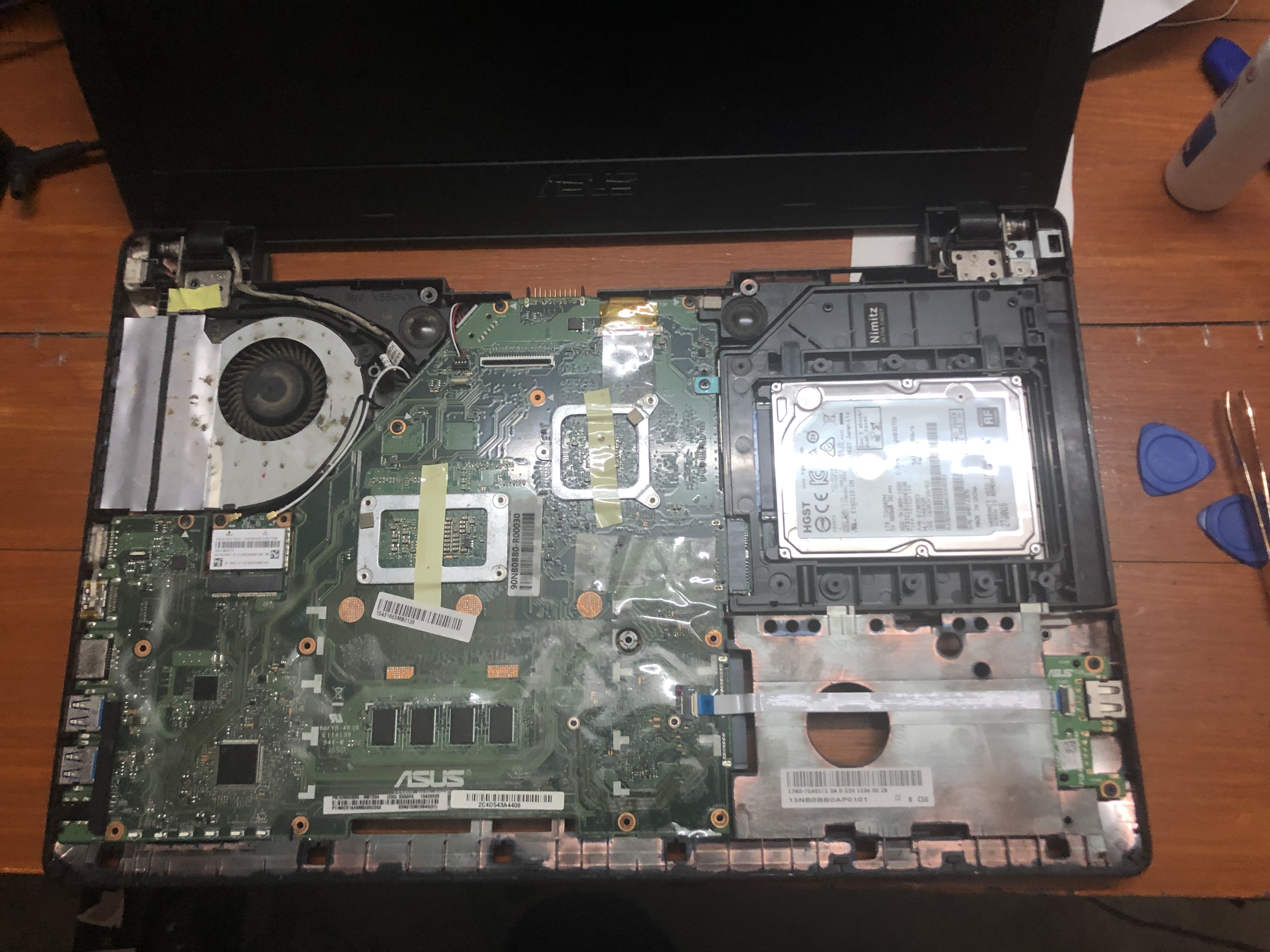 主板布局(真是简陋!!!拧开光驱位的固定在主板的螺母,慢慢抽出机械硬盘。注意右下角有一根白色的排线,接着用手将左边的排线扣打开,然后用镊子扯出排线。(注意风扇右边的扬声器排线,如果没有接上的话,扬声器是没有声音的,请务必要注意!