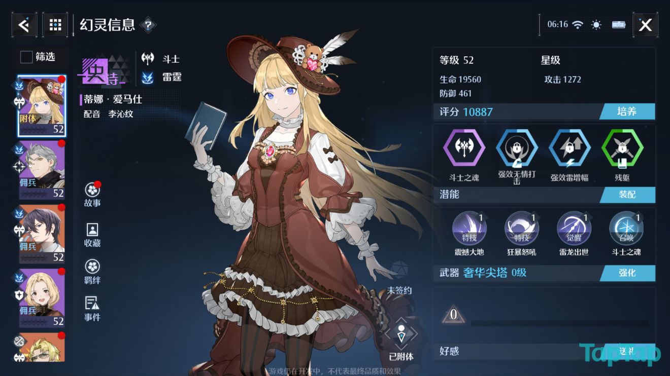 每个幻灵都有四个潜能,其中包括特有潜能,能力潜能,战斗潜能以及策略潜能。其中特有潜能是幻灵专属的,有的时候同品质同职业的幻灵的特有潜能是类似的但不可更换。剩下的三种潜能会随着幻灵等级的提升逐步解锁,且后续可以在潜能库中找同类型的潜能进行替换。