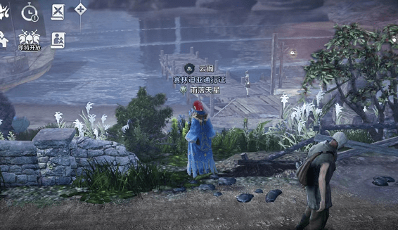 3、最后我们在海边找到码头,在码头上有个木桶,即可获得贝尔利亚渡口知识。