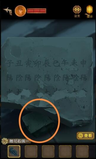 拖动右边石柱上九宫格,拼好获得雕花石佩。