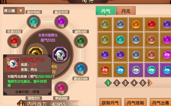 2、我们丹元选择银角和虎丹,新等级银角能回更多蓝。