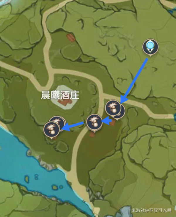 (晨曦酒庄就只需要从风神像一路跑下来按路线走就能采集完成)