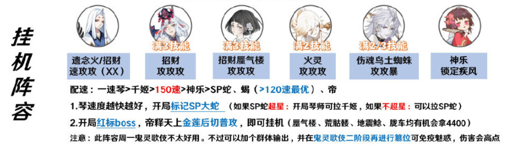 妖琴师>千姬>150速>神乐>SP八岐大蛇、帝释天、蝎女
