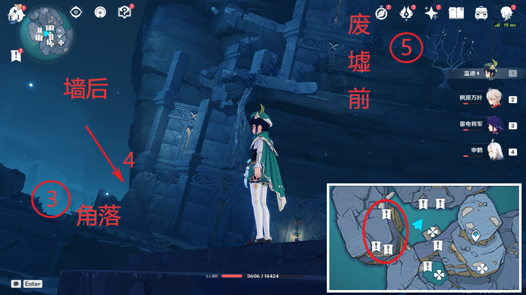 完成后会出现七个残影(在黑夜模式下出现),与其对话后即可解锁成就,点位如下(任务标记)