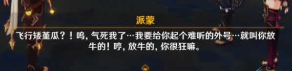 派蒙:飞行矮堇瓜?!呜,气死我了...我要给你起个难听的外号...就叫你放牛的!哼,放牛的,你很狂嘛。