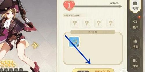3、之后在羁绊界面选择礼物,点击赠送礼物即可。