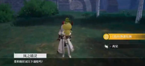 2、同时玩家可以在德尔菲兰平原找到风之精灵来参与极速狂飙的活动,在这个活动中需要玩家驾驶赛车到达终点,然后在过程中会看到有黄色的光圈,触碰就可以获得氮气,然后就可以进行加速。