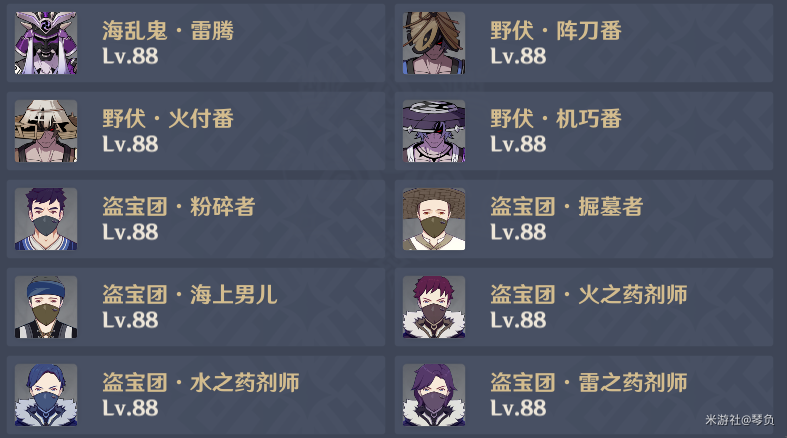(2)下半:愚人众套餐组合(无冰胖,冰莹,雷莹),需要聚怪角色,利好永冻阵容。优先刷新其他四只愚人众,最后刷新镜女。