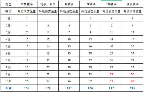下面是现阶段所有棋子1~10级的所有消耗,就10级来说确实比琅纹功力高造价便宜不少,但是考虑到如果10~15级消耗依然是等差数列提升,整体造价超过1个10级琅纹的消耗。(红色部分是推测,黑色部分已证实)