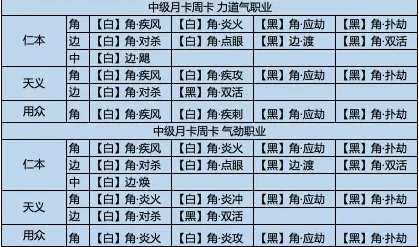 中级推荐这一套相比较初级的推荐,多了98点券的棋子以及1个对杀、1个双活。同时在天义和用众各棋盘里面各加入了1个50棋魂的棋子——这样可以节省一个需要点券的槽位,钥匙使用的效率更高。缺点是不仅仅需要花费点券,同时也需要花时间去积攒棋魂,而且需要的棋魂数量不少。同时告诉各位少侠一个小技巧:市集50棋魂之间的棋子可以平换,前期每个月一定要全部买光。