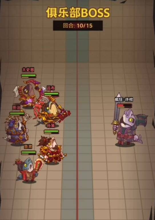 贾诩超强的减怒,然后让boss中毒,吕布心魔加大技能伤害,孙策超强的真实伤害还有完美的格挡可以有效的抵御boss攻击给吕布他们增加时间,太史慈继续增加友方的伤害,释放技能让boss沉默,鲁肃再补一下,然后灼伤boss