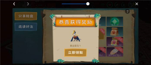 2、玩家需要通过分享转盘的活动概率得到黄金犀鸟。