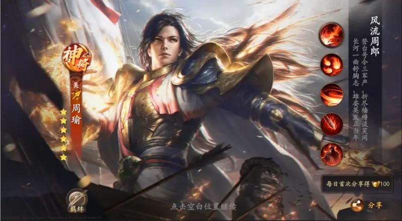 每场战斗仅有一次,在接战后短时间内,周瑜会对血量最高的敌方单位持续施法,每秒都能造成高伤害!