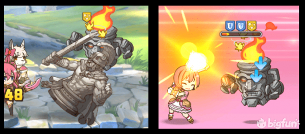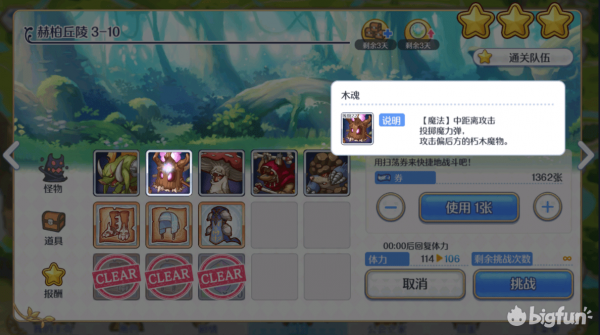 肉肉的石头人出现,这个时候需要我方爆发角色了。暴击和法师单位,基本可以在这里上场了。一顿爆发操作,即可通关!