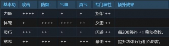 角色的基础属性,共有四项:力量、体魄、灵巧、意志。