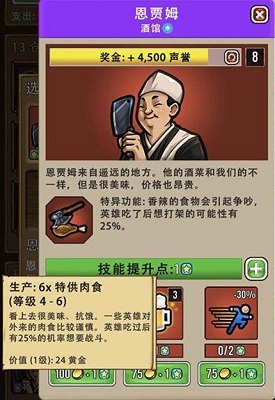 2、英雄战斗完后感到饥饿到酒馆中购买吃食,吃完特供肉食之后就有几率再次去战斗。