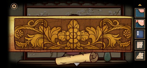 4、点击琴的右侧(琴头小方框)把暗格碎片放入其中,交换位置拼出梅花。把情书和珠钗放入暗格中,给黄衣夫人开门。