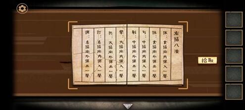 7、用钥匙打开红色柜子,获得⑱琴弦2。把琴弦放在古琴上修好古琴。在夫人桌上放上《琴谱》拼好残页。