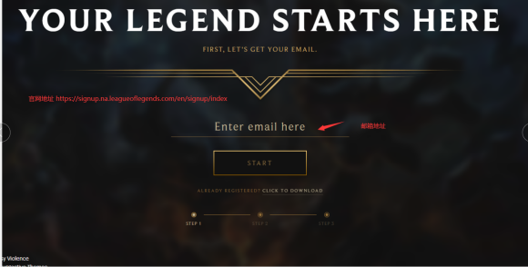 2、进入游戏官网,进入这个界面输入邮箱后点击START。