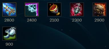 海克斯科技GLP800、双生暗影、炽热香炉、雅典娜的邪恶圣杯、轻灵之靴、亡者的板甲。
