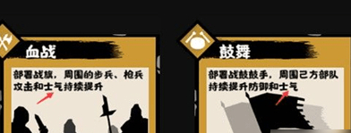 2、战斗的过程中也是可以使用部分的卡牌来提升军心士气,比如血战、鼓舞。