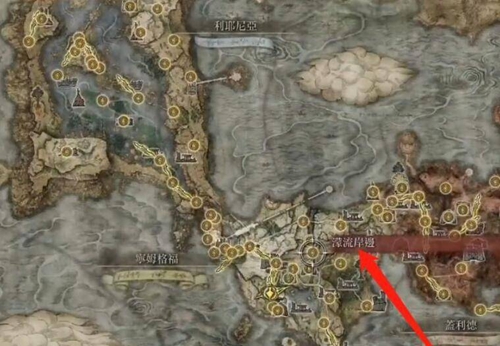 1、首先我们打开游戏中的地图,前往利耶尼亚的濛流岸边。