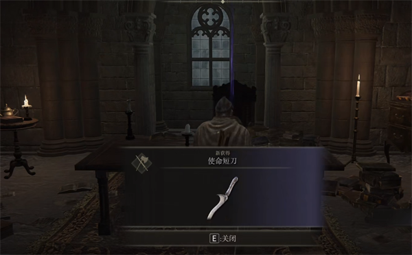 4、在桌子旁边就能拾取到使命短刀这个武器了。