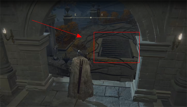 1、手杖剑的位置就在【王城西边城墙】下面一点点;