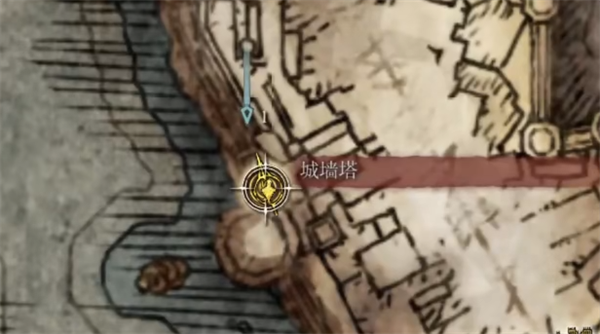 1、战鹰爪形剑的位置就在【城墙塔】的外面,下图中有标注出战鹰爪形剑的位置;