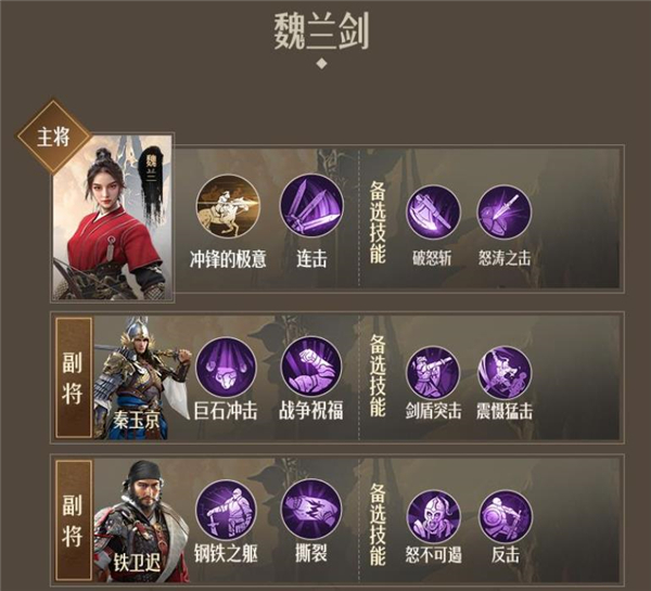 阵容评价:以魏兰为核心,副将可以提升队伍输出能力,是比较成熟的暴力阵容。