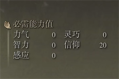 秘文剑这个武器对信仰值得需求会比较高,需要20点信仰,但是在后期信仰点的越高伤害也会越高。