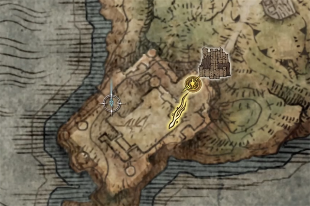 1、大剑的位置在【摩恩城(升降机前方)】外面,下图中蓝色标注点处;