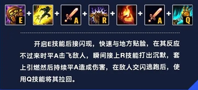 1、这里不先手放q技能,而是先开e后闪现接近敌人,在用平a击飞敌人,大招接沉默后挂点燃,