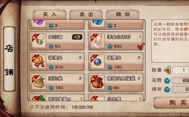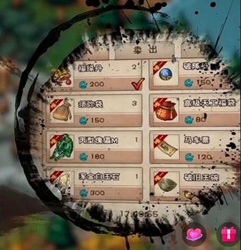2、售价320烟雨钱,还有其他的白玉石、傀儡、各种丹等等商品。