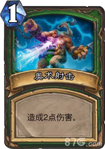 的奥术射击是猎人的专属魔法卡,卡牌效果是造成2点伤害,花费是1。这张卡在猎人的速攻卡组中并不是见不到,但是相对于新卡快速射击和杀戮命令来讲,这张卡应用方面还是少一点的。
